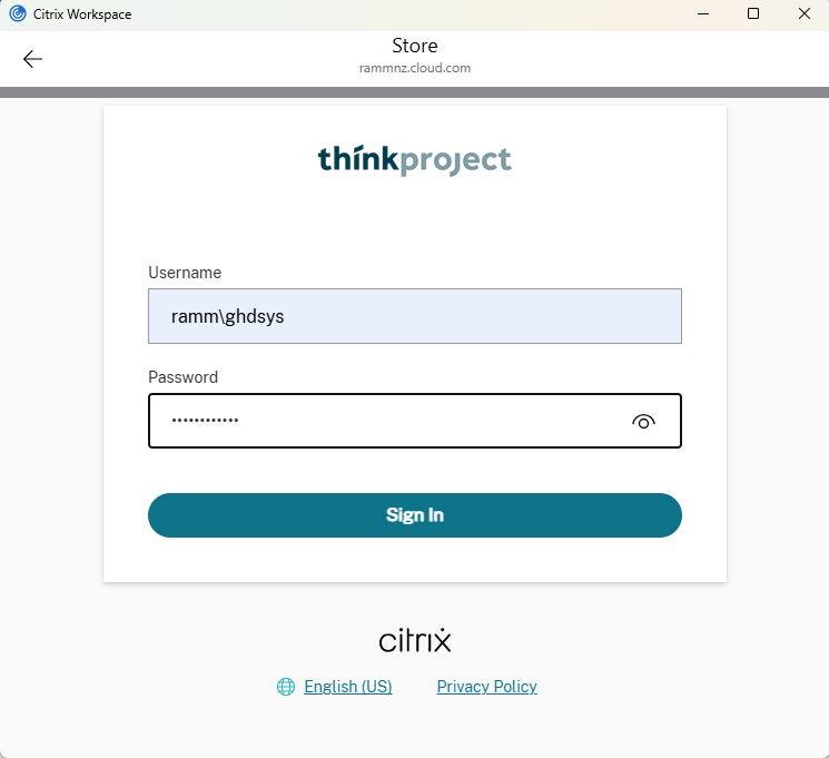 - Launch Citrix Workspace, click Sign In. If the window asks for your Store URL, fill in with "rammnz.cloud.com". In the sign in window, type in "ramm\" then your username, and your password.