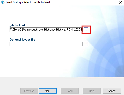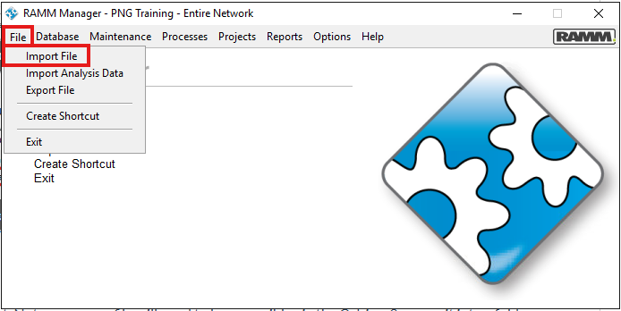 Changing the database selected in RAMM Manager to Papua New Guinea - Go to File → Import File → Load.
