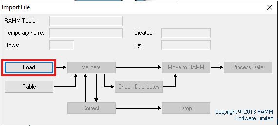 - Next sequentially select Next, Load, Validate, Check Duplicates and Move to RAMM. If you encounter any errors in these steps, they will need to be resolved before continuing.